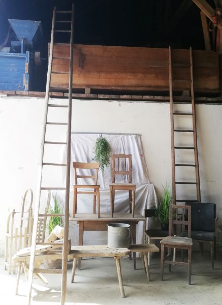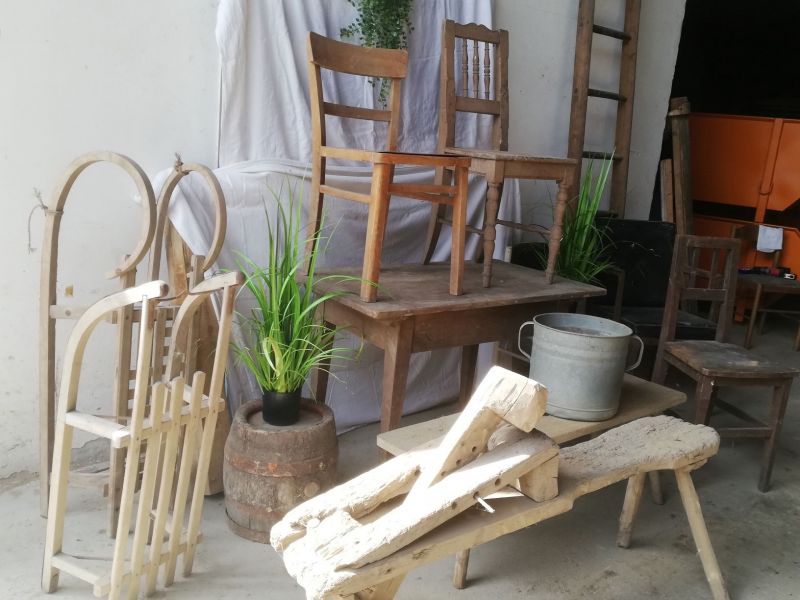 Holz- Stühle in verschiedenen Farben und Größen